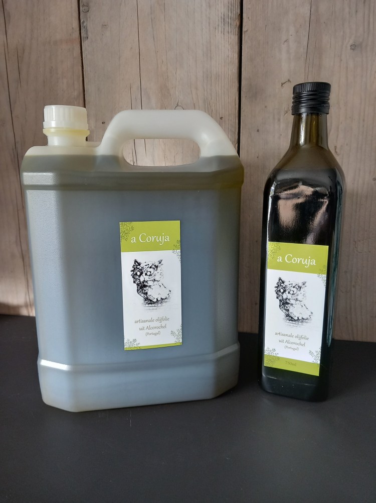 We verkopen olijfolie in flessen van 750ml (22,50 EUR) en bidons van 5 liter (100,00 EUR). Betalen kan cash of via Payconiq.